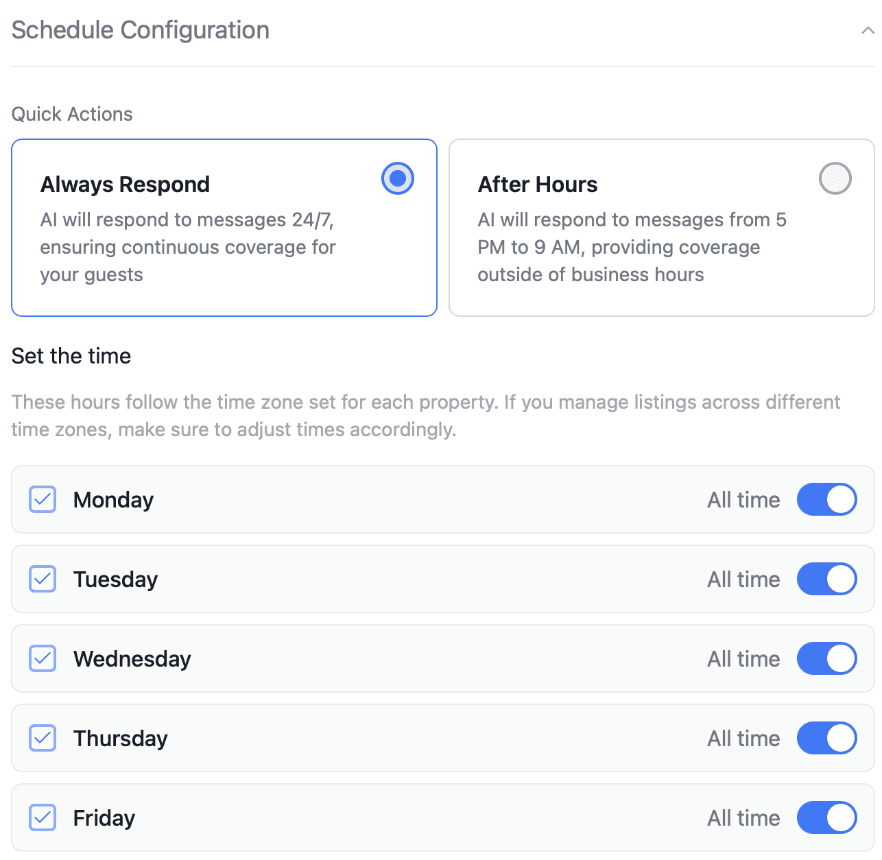 Elige cuándo AutoPilot se ejecuta por hora del día y listados.